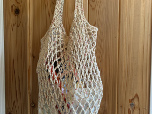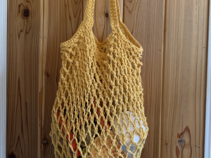 Crochet Grocery Bag- Twisted Yellow Red Cream