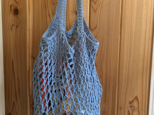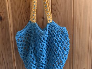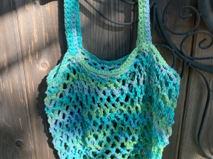 Crochet Grocery Bag- Turquoise with Yellow Straps