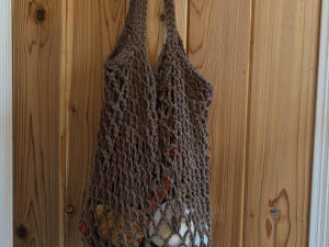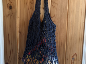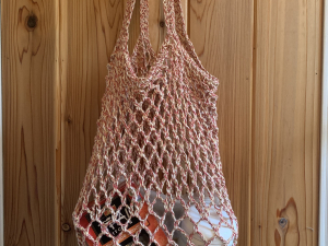 Crochet Grocery Bag- Twisted Red Yellow Brown Cream